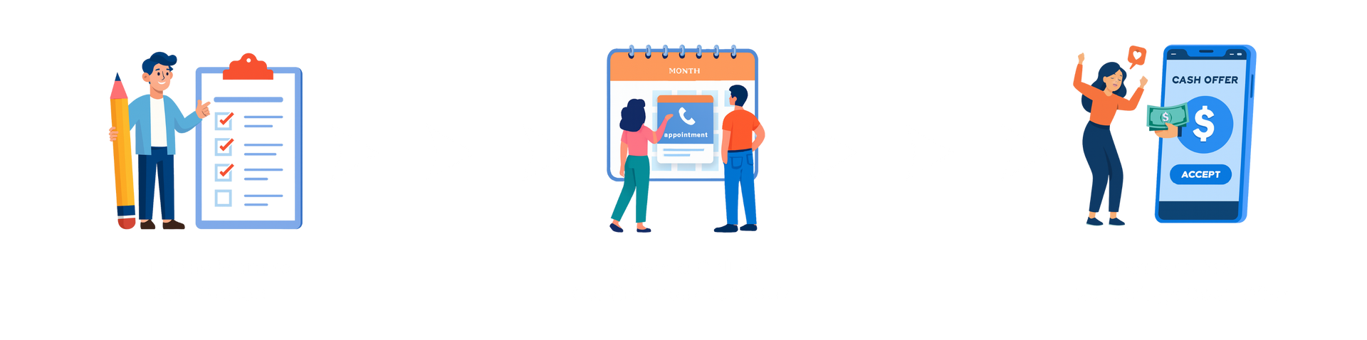 We’ll schedule a time to meet, check out the property together, and answer any questions you’ve got. By the end of the walkthrough, you’ll have a no-pressure, no-obligation cash offer in hand.